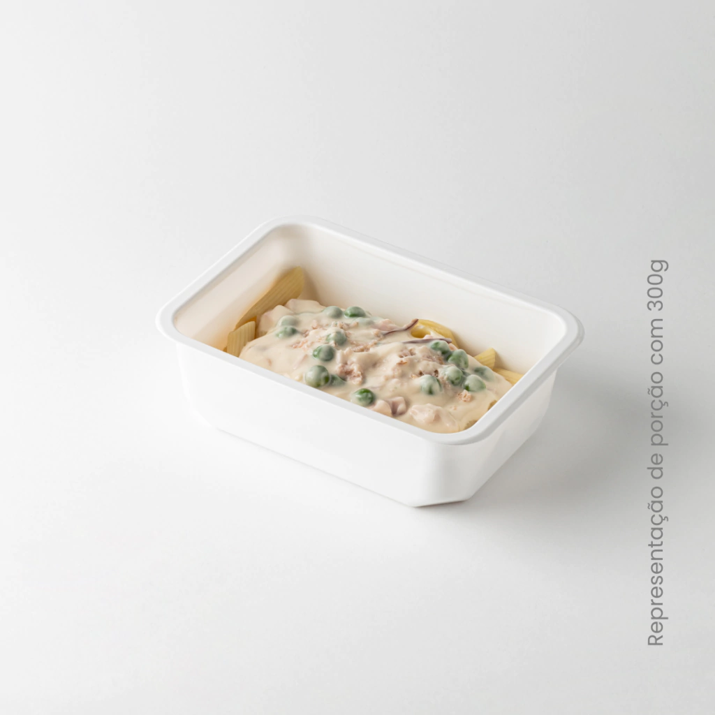 INGREDIENTES: Leite, penne, creme culinário, ervilha, peito de peru triturado, manteiga sem sal, farinha de trigo, queijo parmesão, sal, amido modificado de mandioca, azeite de oliva, cebola em pó e alho em pó.