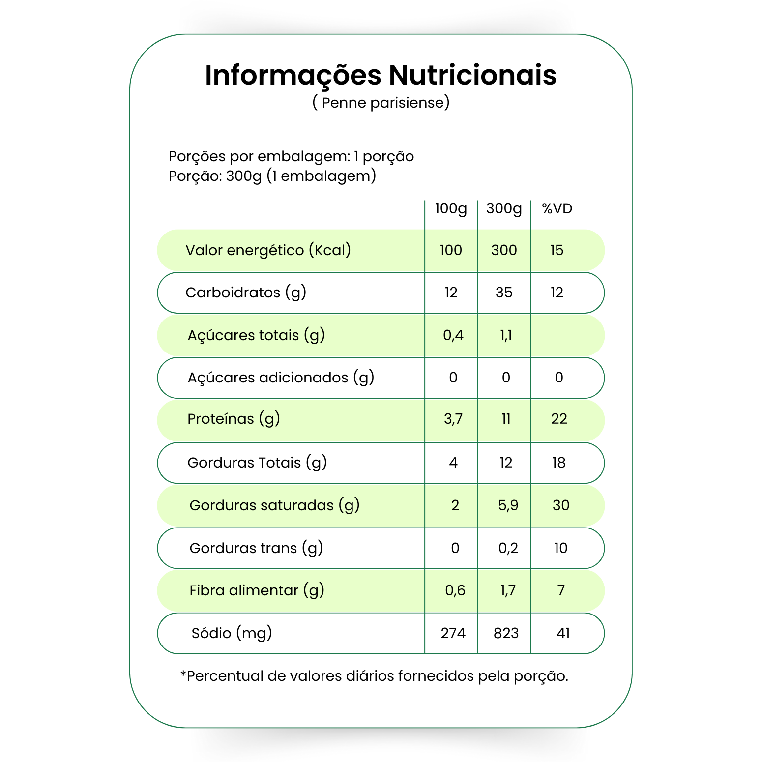INGREDIENTES: Leite, penne, creme culinário, ervilha, peito de peru triturado, manteiga sem sal, farinha de trigo, queijo parmesão, sal, amido modificado de mandioca, azeite de oliva, cebola em pó e alho em pó.