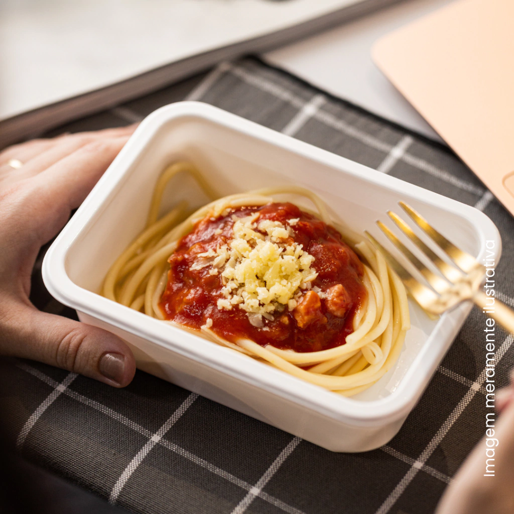 Conheça a refeição desse box: Espaguete ao Molho Pomodoro com Bacon